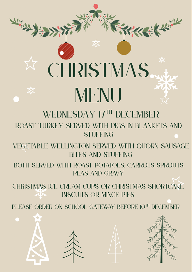 Please note that if you have not ordered a school dinner for your child, you will be required to send your child in with a packed lunch.
